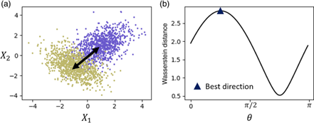 Projektionsbasierte Distanzmetriken spielen eine wichtige Rolle in der Analyse hochdimensionaler Daten. Durch Projektion der Daten auf eindimensionale Unterräume wird die hochdimensionale Distanz durch eine Summe eindimensionaler Distanzen ersetzt, die einfacher zu berechnen sind. Ein Beispiel aus dem maschinellen Lernen ist die Anwendung der „Sliced“ Wasserstein-Distanz als Verlust-Funktion in Neuronalen Netzen [1]. Am ISAS wurde außerdem ein Verfahren zum Sampling von Wahrscheinlichkeitsverteilungen entwickelt, das eine solche Metrik verwendet [2].
